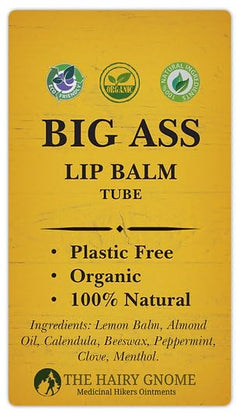 - Big Ass Lip Balm - The Hairy Gnome's Magical Lip Balm! Made to waste space and save lips. This lip balm's got the badonk-a-donk to satisfy. It's big and thick and all natural baby, just the way we like it. So, stop being dry and get this Big Ass Lip Balm.